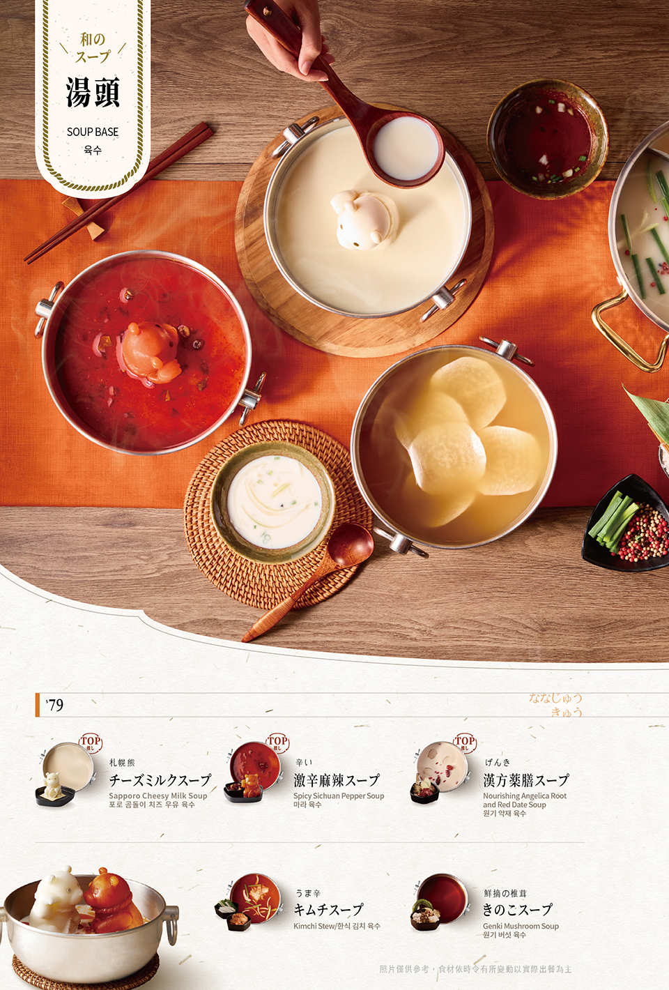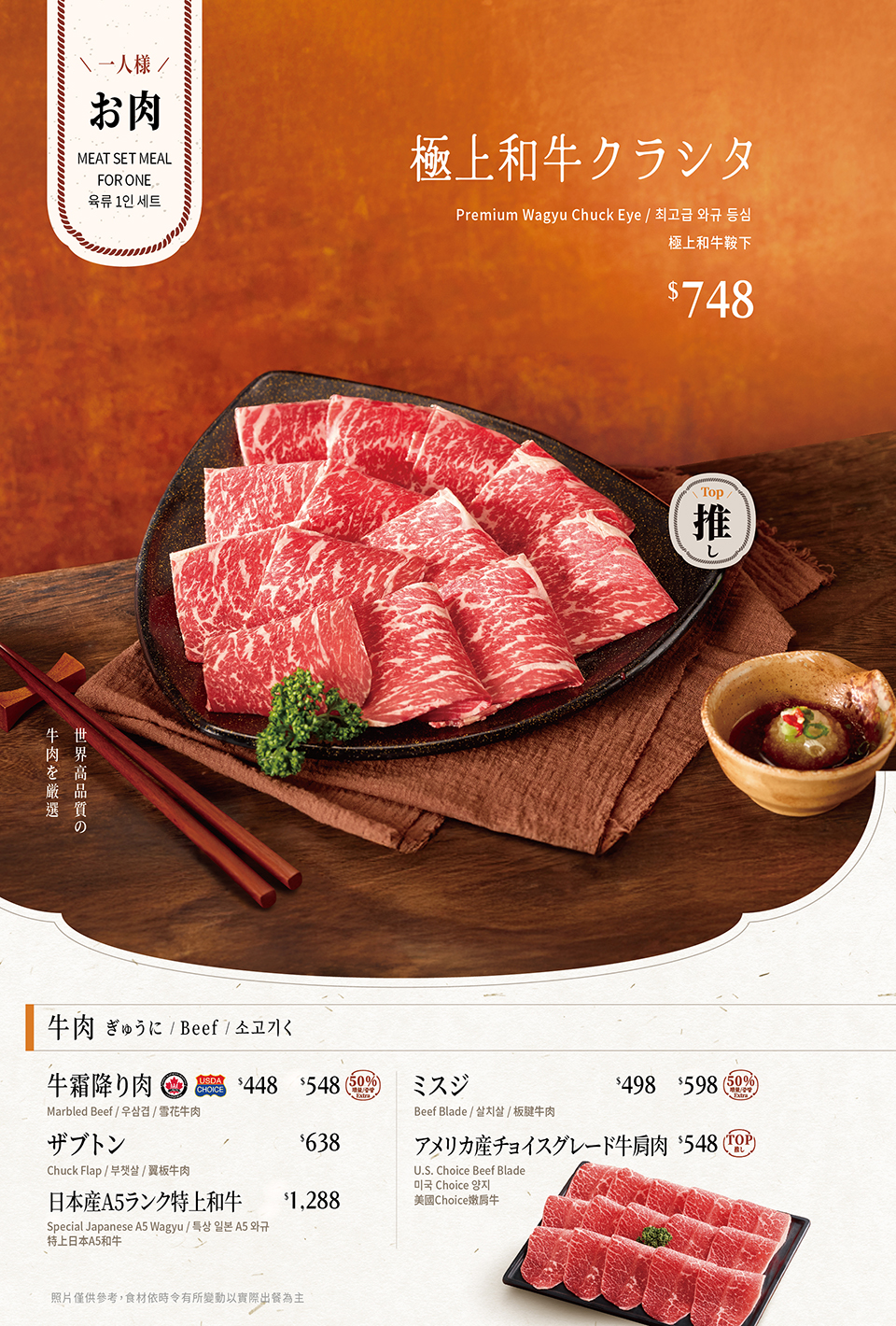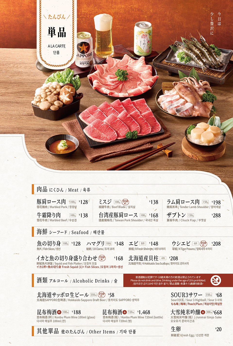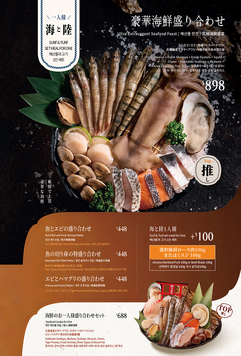 English/Japanese/Korean Menu